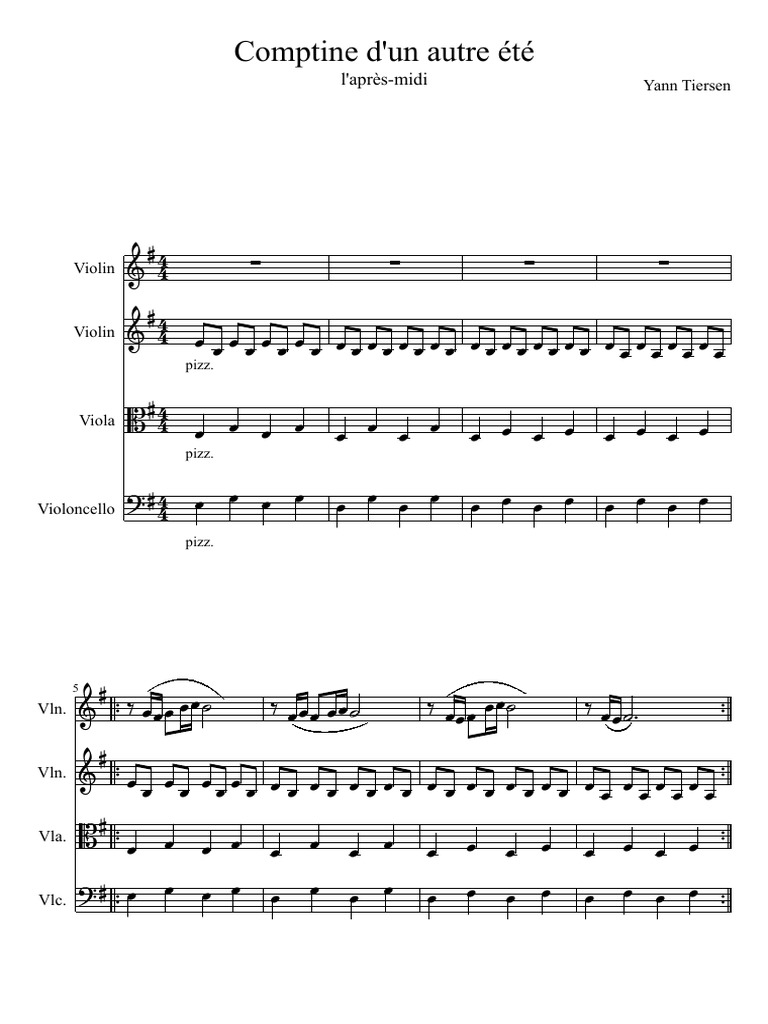 His musical career is split between studio albums, collaborations and film this song is well known by people and if you like it, you can also download the free comptine d'un autre été sheet music to play with everyone piano. Cello clarinet flute guitar oboe piano saxophone trombone trumpet violin voice other solo instrument solo instrument + piano solo + orchestra. Comptine d'un autre été from yann tiersen, free piano sheet music to print. For violin and piano, easy version.